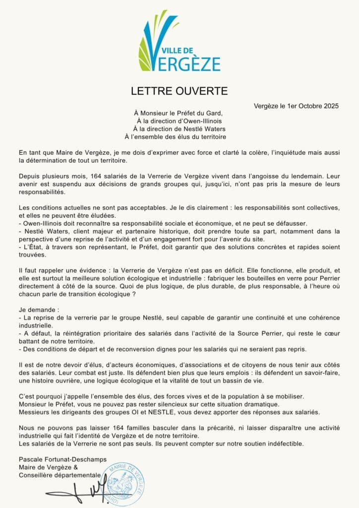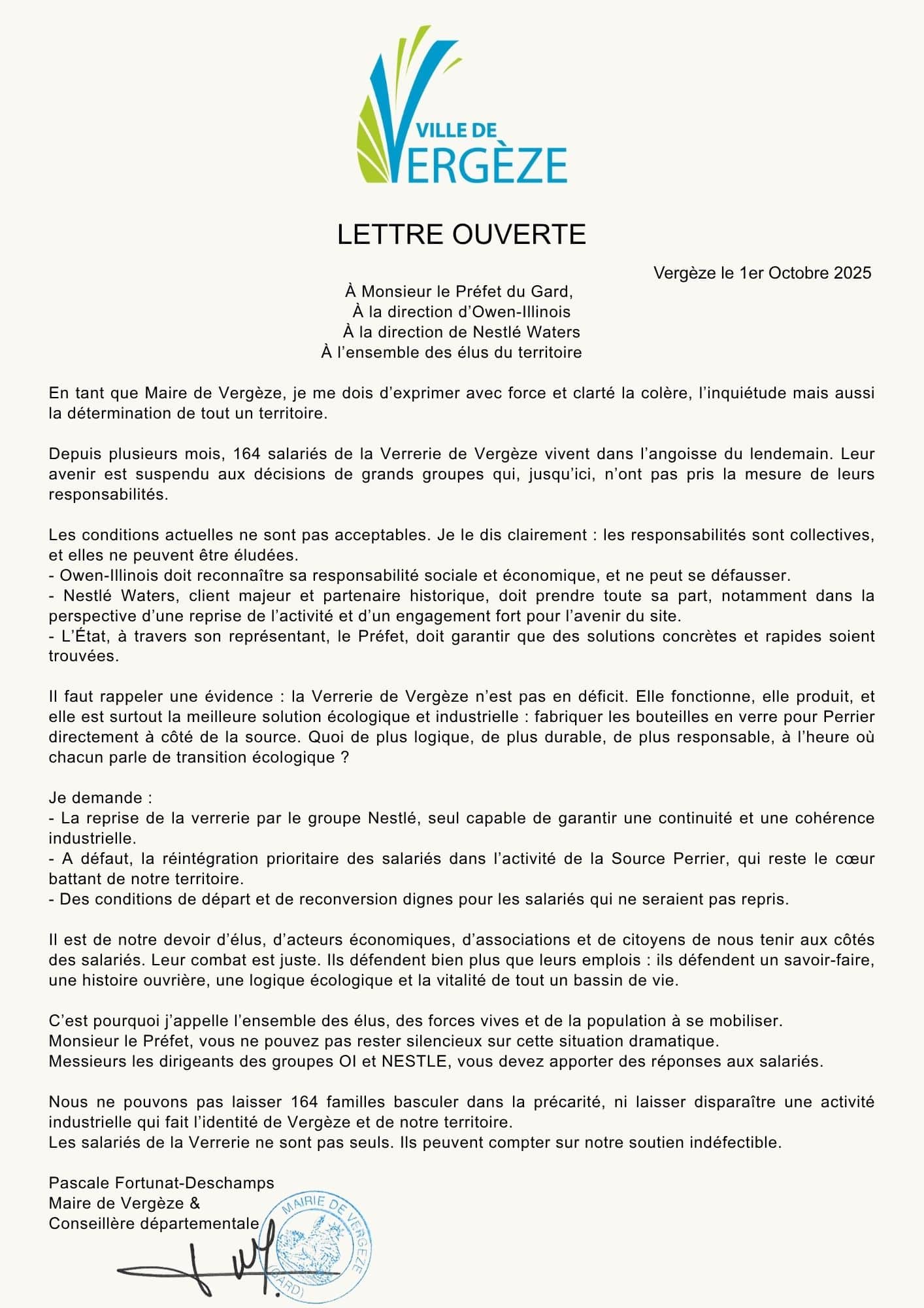 Madame le Maire a tenu à s’exprimer sur la situation de la Verrerie à travers une lettre ouverte, que vous pouvez consulter ci-dessous.