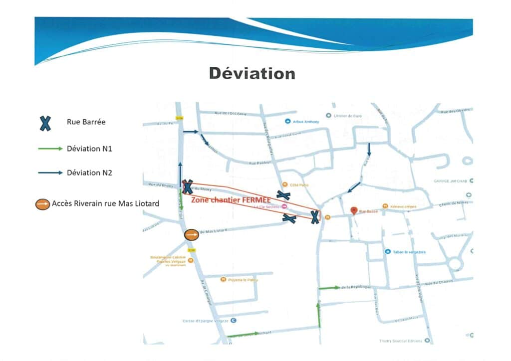 - Accès riverains autorisé par la rue du Mas Liotard (en sens interdit)