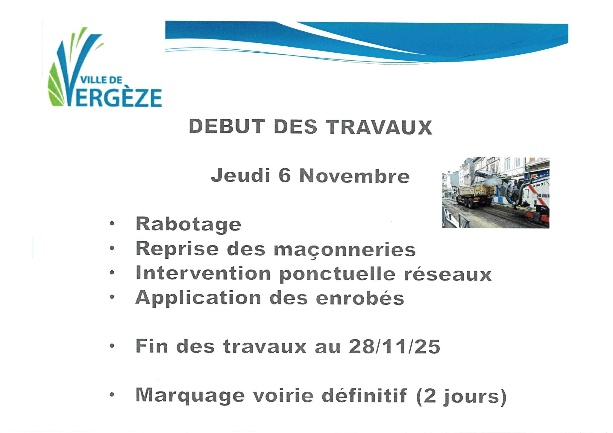 Les interventions sont prévues à partir du jeudi 6 novembre et s’étendront sur une durée prévisionnelle de trois semaines, avec une date de fin estimée au 28 novembre.