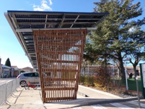 Commencées au mois d’août, les ombrières photovoltaïques abritant les places de stationnement situées devant l’école maternelle sont terminées :